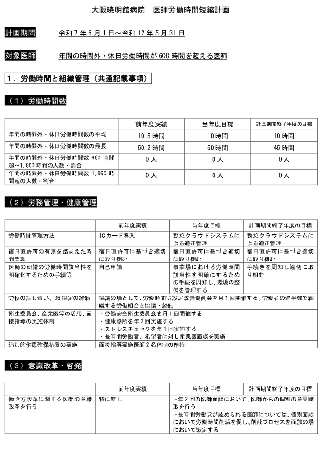 HOME > 病院のご案内 > 医師労働時間短縮計画
