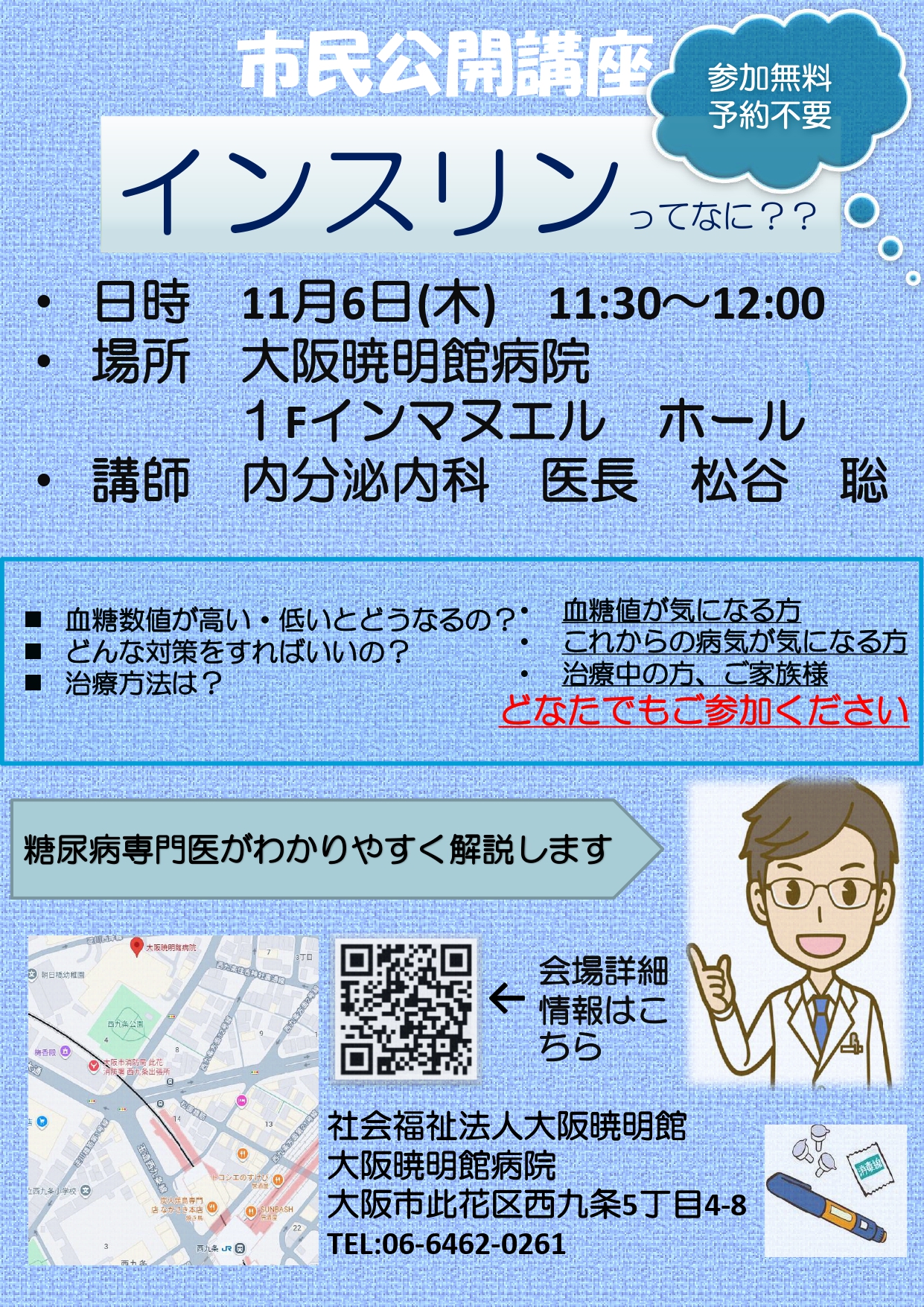 2025年11月6日(木)の11:30から12:00まで、1Fインマヌエルホールで市民公開講座を開催します。