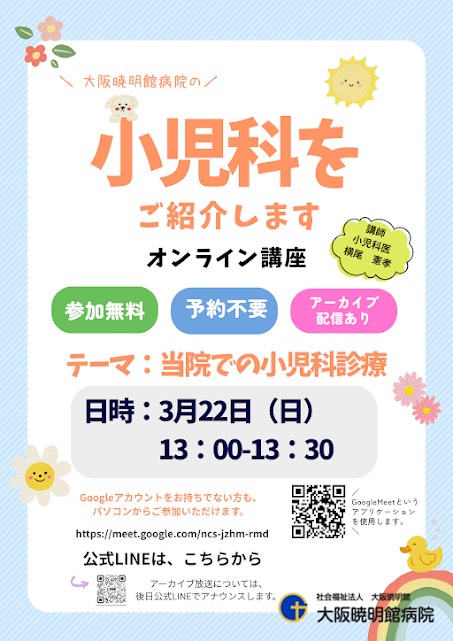 小児科 医長 横尾 憲孝 医師 が「当院での小児科診療」をテーマに、大阪暁明館病院の小児科をご紹介します。