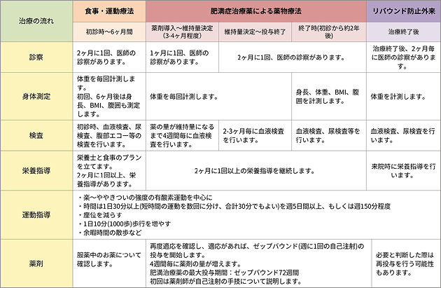 ②肥満症治療薬開始後も1~2ヶ月に1回の診察、2ヶ月に1回の栄養指導が必要です。
